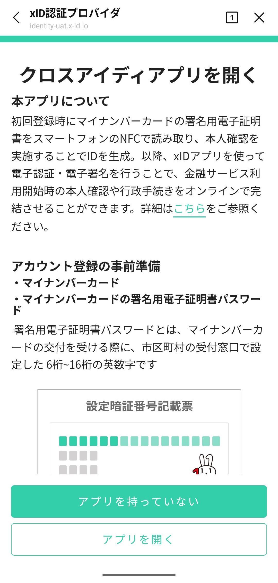 手順1: 連携される場合は[マイナンバーカード連携]を押し[アプリを開く]を押してください。