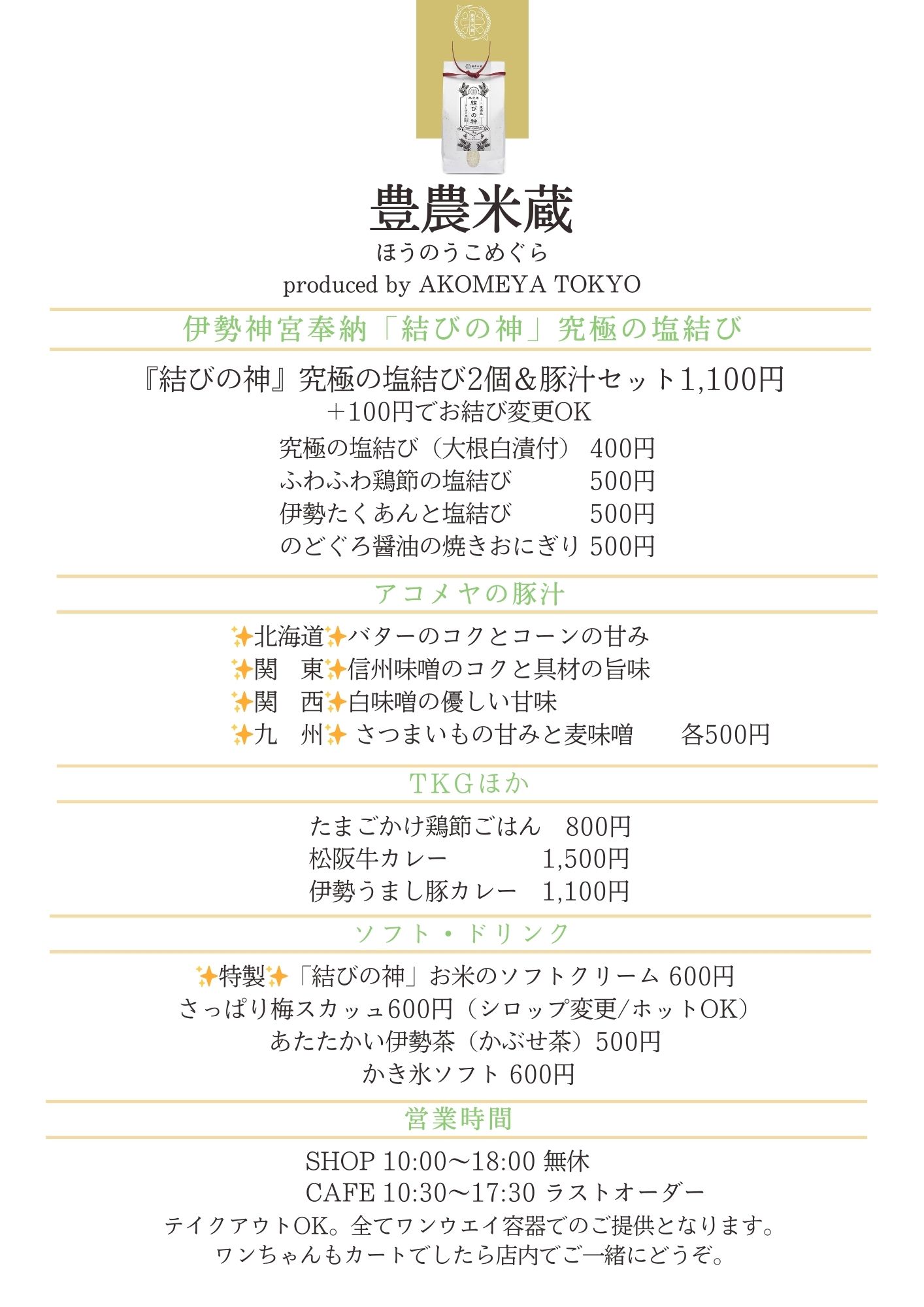 AKOMEYAがプロデュースする「豊農米蔵」は、伊勢神宮奉納米「結びの神」をはじめ、お米の美味しさを引き立たせるご飯のお供や雑貨を取り揃えたライフスタイルショップ。